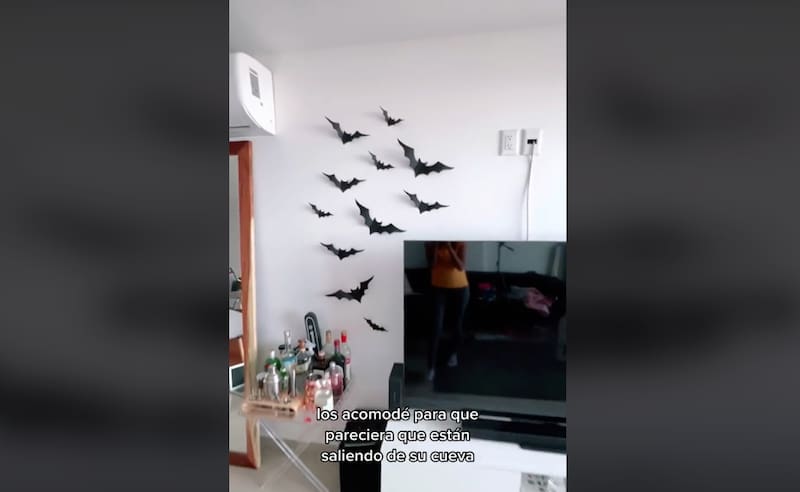 La tiktoker Marissa Peña propone una idea económica y sencilla para hacer tus propios murciélagos decorativos, donde puedes contar con la ayuda de niños. En primer lugar, necesitas calcar la mitad de un murciélago (puedes buscar figuras como “bat shape” en Google). La idea es calcar al menos tres tamaños diferentes. Luego, dibuja estos contornos en una cartulina negra que esté doblada por la mitad y córtalos: así, ambos lados te quedarán simétricos. Debes repetir el proceso cuantas veces quieras y con los tamaños que desees. Para darles más relieve, la tiktoker hace unos dobleces más y listo, puedes pegarlos sobre la pared o colgarlos con ayuda de hilo de pescar.