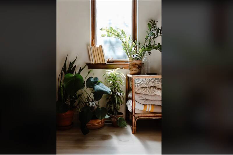 Esta decoración es más tierna que aterradora, quizá más ideal para hogares con niños pequeños. Es tan simple como conseguirse unos ojos locos —que venden en cualquier tienda de fiestas y disfraces— y ponérselos a tus plantas. Así, quedarán con un aspecto más divertido. Si no tienes tiempo para comprar nada, las puedes hacer con un par de pelotas de pinpón y silicona caliente. Una vez que pegas estas pelotas una a la otra, y luego a un palo de brocheta, pinta de negro las pupilas y listo: puedes clavar tu set de ojos en cualquier planta. Aquí puedes ver cómo hacerlo.