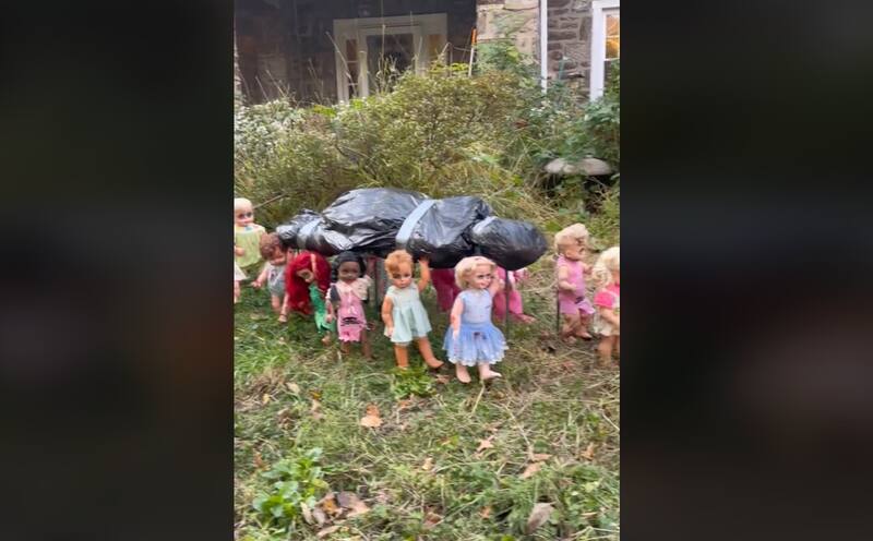 También puedes pintarles ojeras o ponerlas en posturas tenebrosas. Una tiktoker registró que en un jardín, además de todo esto, incluyeron una “figura humana” de bolsa de basura, la que las muñecas cargaban como si del peor rito se tratara. Una ilusión óptica que definitivamente llamará la atención de todo tu vecindario. Para tener algunas ideas de cómo hacerlo, revisa aquí.