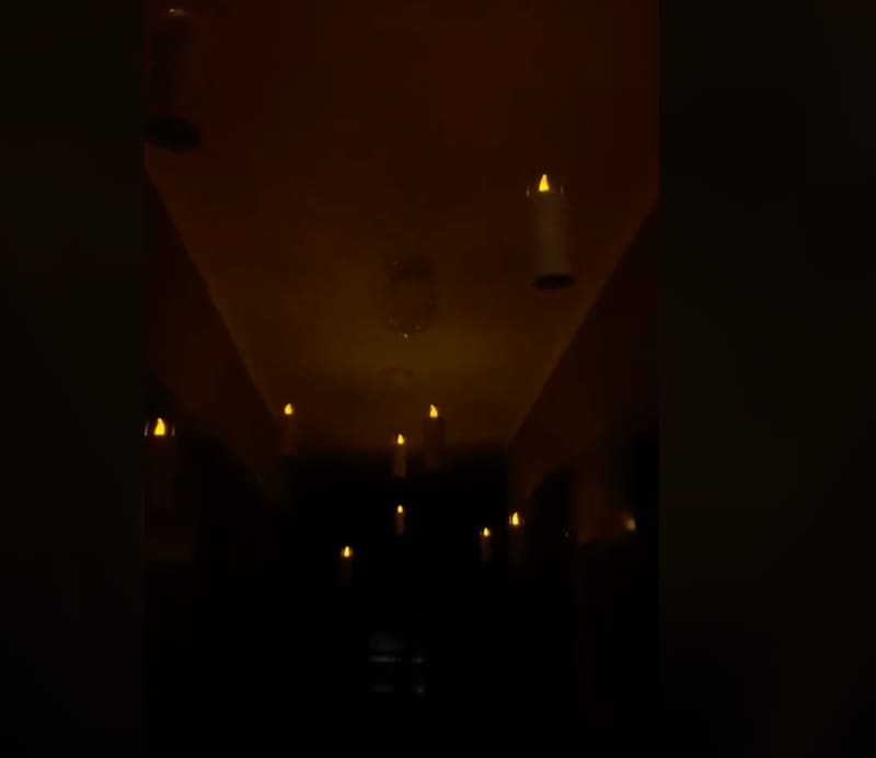 Esta es una de las ideas estrella de este año, tanto en Pinterest como en TikTok, ya que mezcla tanto el terror con la magia. Para hacerla tienes dos caminos: el primero es comprar velas con luz led y colgar cada una con ayuda de hilo de pescar —o náilon— y pegamento.