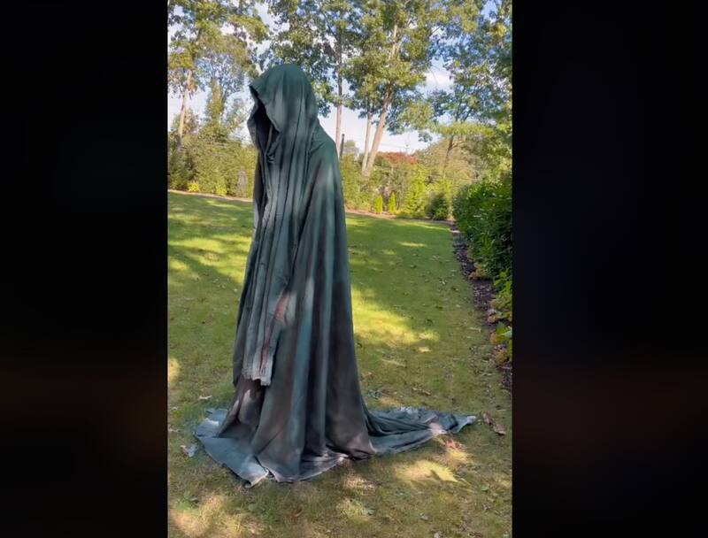 Esta idea puede ser perfecta para quienes tengan un patio amplio o quieran decorar dentro de un condominio en comunidad. El tiktoker Brandon Hardy sugiere hacer una tenebrosa escultura con forma espectral, algo así como un dementor o el viejo del saco. Para construirla, necesitas una esfera de espuma, varios flotadores largos de piscina (tallarines), un palo de escoba que sirva de pedestal, cinta adhesiva y pintura en espray.