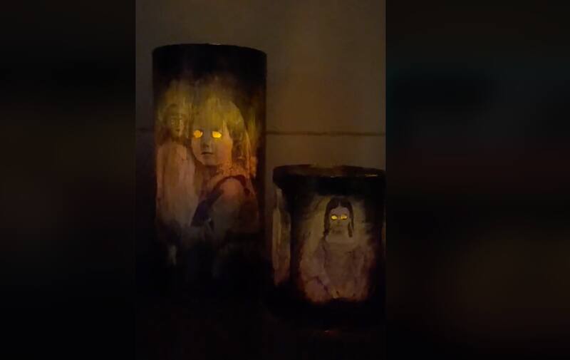 Pero si quieres velas todavía más creepy, los tiktokers Craft grogs tienen una buena alternativa. Para llevarla a cabo necesitas velas, ya sea tradicionales o LED, además de pintura tipo tiza negra, cola fría, un recipiente de vidrio transparente y la impresión de una foto de niños antiguos (o fotos tuyas, si eres lo suficientemente viejo). La idea es pintar el recipiente de vidrio, dejar secar y, mientras tanto, cortar los ojos de los niños en la foto, ojalá de forma irregular. Luego, adhiere la foto con los ojos recortados con la ayuda de cola fría y dejar secar. Una vez que esté seco, ya está listo para ponerle la vela dentro led. El resultado es realmente perturbador.