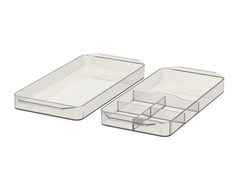 Estas pequeñas herramientas permitirán que tus cajones queden ordenados y hagan más expedita y funcional tu experiencia buscando los productos que necesitas. Depende de ti de cómo quieras usarlos: es decir, si quieres rellenarlos con maquillaje, skincare o productos de belleza. En el mercado hay diferentes alternativas, pero las Godmorgon de Ikea son de plástico PET y color ahumado, además de que se encuentran rebajadas. Miden 34 x 17 x 3 cm, y son compatibles con cajones que no tengan tanta profundidad.