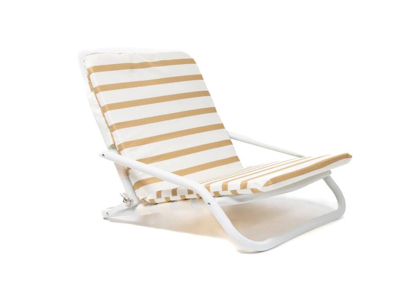 La segunda alternativa tiene un nivel superior de comodidad, o al menos para quienes amen estar acolchados. Tiene un bolsillo trasero que puede ser usado para guardar la lectura playera. Además, es fácil de transportar ya que aparte de plegarse tiene una correa para el hombro. “Liviana y fácil de llevar. Me gusta que haga juego con mi quitasol”, escribía en una reseña una de sus usuarias.