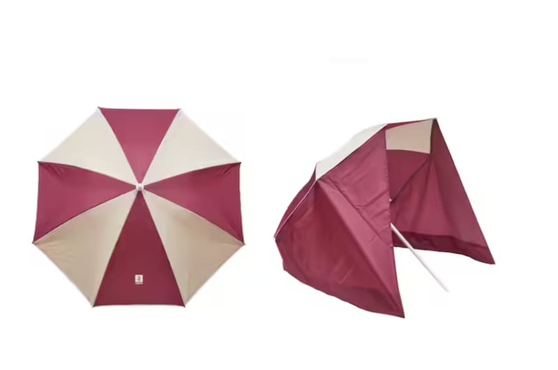 Este es un producto práctico, funcional y a un precio justo. Es un quitasol que, al mismo tiempo, tiene cortavientos, algo extremadamente útil para las playas chilenas. Clavado en la arena puede resistir vientos de hasta 20 km/h, y sus lados son desmontables, lo que convierten el quitasol en un refugio para tener más privacidad. Así, tienes dos productos en uno. Para que los laterales no se vuelen, se llenan de arena. Cuenta con un tejido con protección solar UPF 50+, y su diámetro es de 160 cm, perfecto para dos adultos.