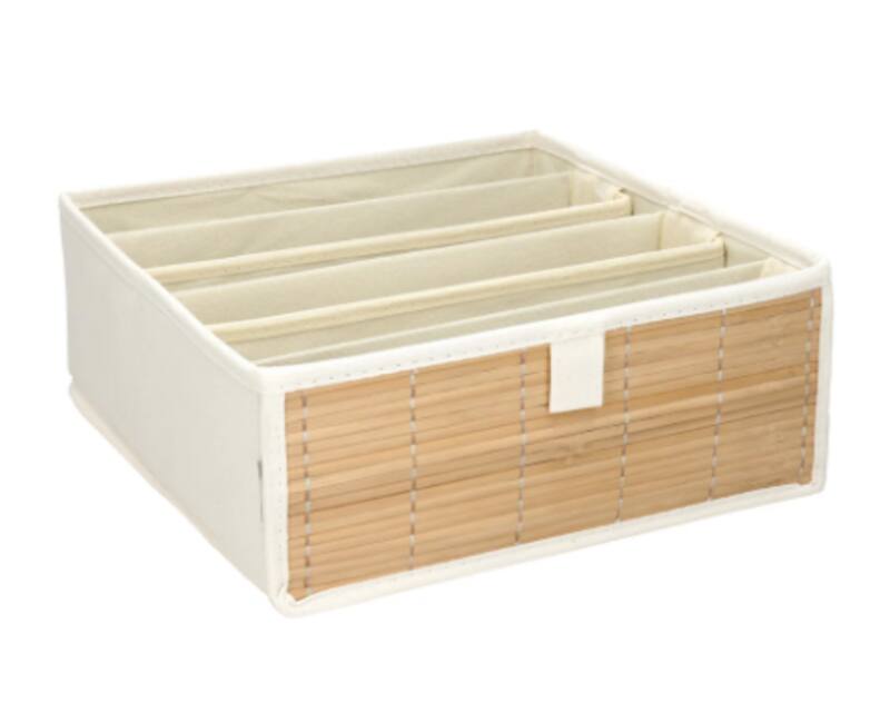 Este organizador de tela fue diseñado específicamente para organizar los sostenes en tu cómoda o clóset —algo que suele ser una pesadilla— y de esta forma aprovechar mejor el espacio. Es de algodón y bambú y sus dimensiones son 28x28x11 cm.