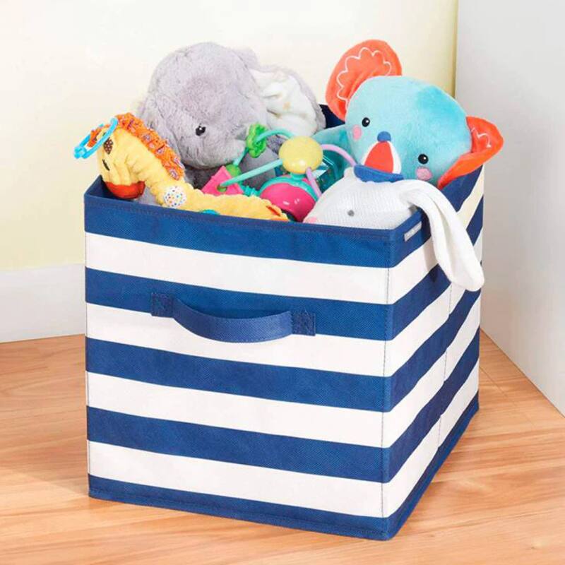 Otro canasto, esta vez de tela, de 32x34x32 cm, también diseñado para guardar objetos más grandes o incluso para dejar la ropa sucia. Es lavable, tiene manillas para moverlo fácilmente, y sus sencillos colores pueden adaptarse a distintas decoraciones.