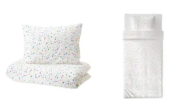 Esta funda de plumón es colorida y a la vez neutral. Tejida con algodón de cultivo sostenible, su materialidad es suave y natural, lo que permite que transpire y absorba la humedad. Puede servir para niños o niñas y por sus ligeros tonos es capaz de combinar en cualquier espacio.