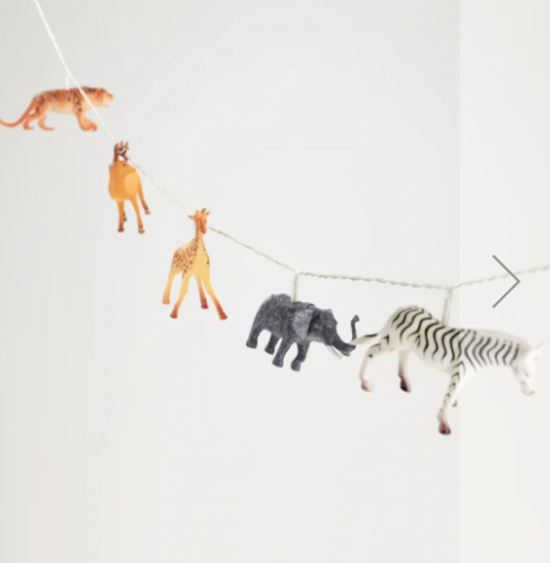 Las guirnaldas luminosas entregan un pequeño toque de luz para que los niños y niñas se sientan cómodos en sus espacios, en especial cuando llega la hora de dormir. Esta en particular tiene entetenidos diseños con figuras de animales. Cuenta con 8 luces cálidas y tiene un largo de 2 metros. Ocupa baterías AA.