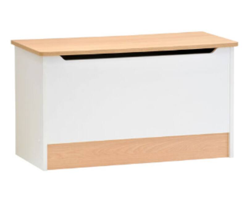 Si cabe, un baúl nunca vendrá mal en la habitación de los niños. Para evitar que los juguetes y objetos circulen sin destino por la pieza, esta es una excelente forma de almacenaje, con la que además ellos mismos pueden aprender a ordenar y guardar. Este modelo además sirve como asiento cuando está cerrado. Sus medidas son: 45 cm de alto, 36 cm de ancho y 80 cm de largo.