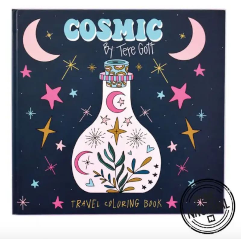 ¿Quieres dejar atrás los pensamientos rumiantes? Entonces colorea. Cosmic es el penúltimo libro de Tere Gott, artista que cuenta con varias imágenes relacionadas al universo y el medio ambiente. En sus hojas puedes encontrar un nuevo mundo cuyos detalles dependerán de la creatividad de tu madre.