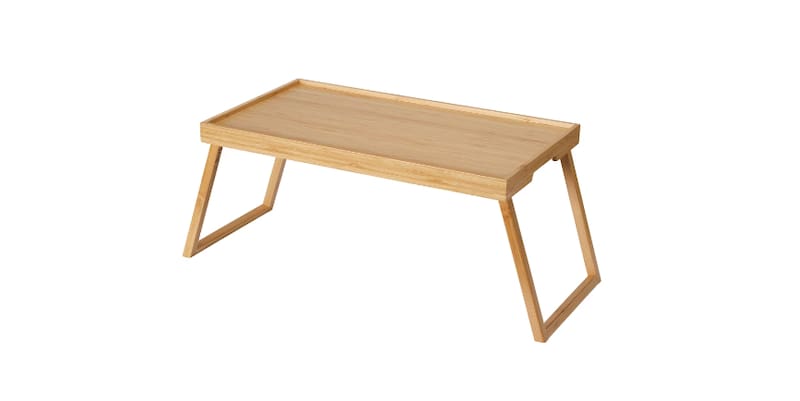 Este modelo de Ikea, fabricado con bambú, cumple perfectamente con esos requisitos: tiene dos patas plegables que permiten darle altura, pero también se puede usar plana. Mide 52 cm por 29 cm, perfectos para recibir un desayuno o comida para dos personas.