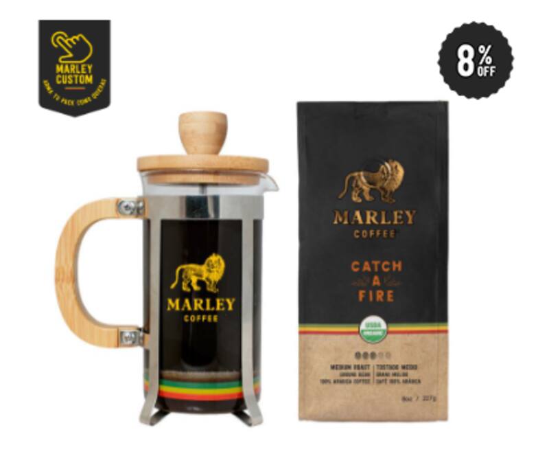 11. Pack Marley Coffee: prensa francesa 350 ml + café Catch a Fire 227 g