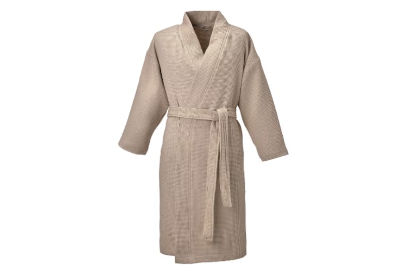 El elemento central ahí no es otro que la bata, una prenda a veces desdeñada pero fundamental para esos momentos de relajo radical. Ikea tiene este modelo de algodón con textura waffle, capaz de secar la humedad, pero al mismo tiempo ligera y suave.