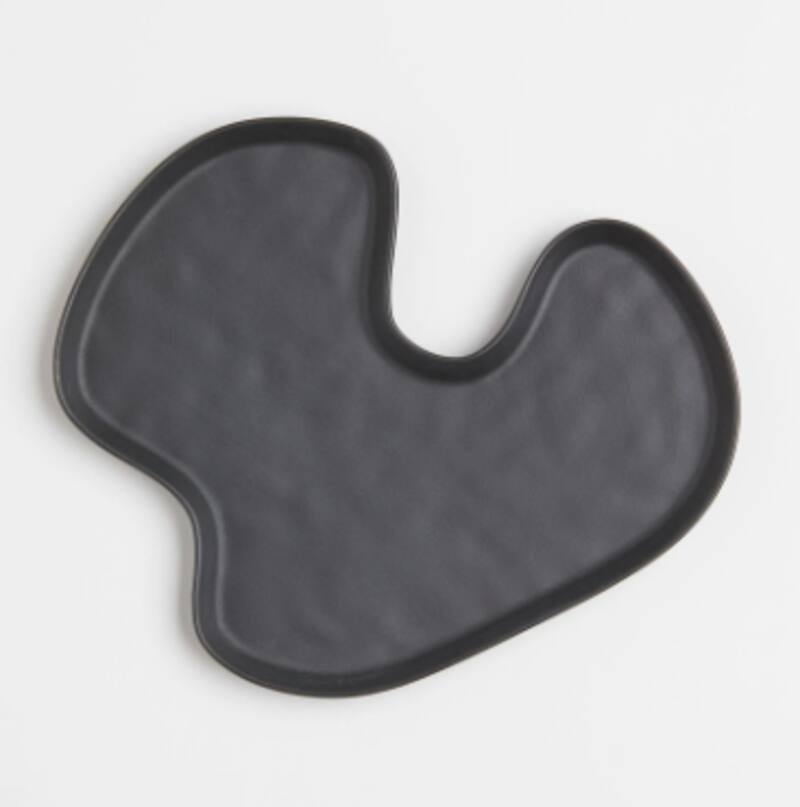 De forma irregular, en esta bandeja de cerámica gres esmaltada puedes montar lo que quieras y siempre se va a ver cul. Es moderna, sobria y divertida. Sus dimensiones son de 1,5 x 26 x 22,4 cm.