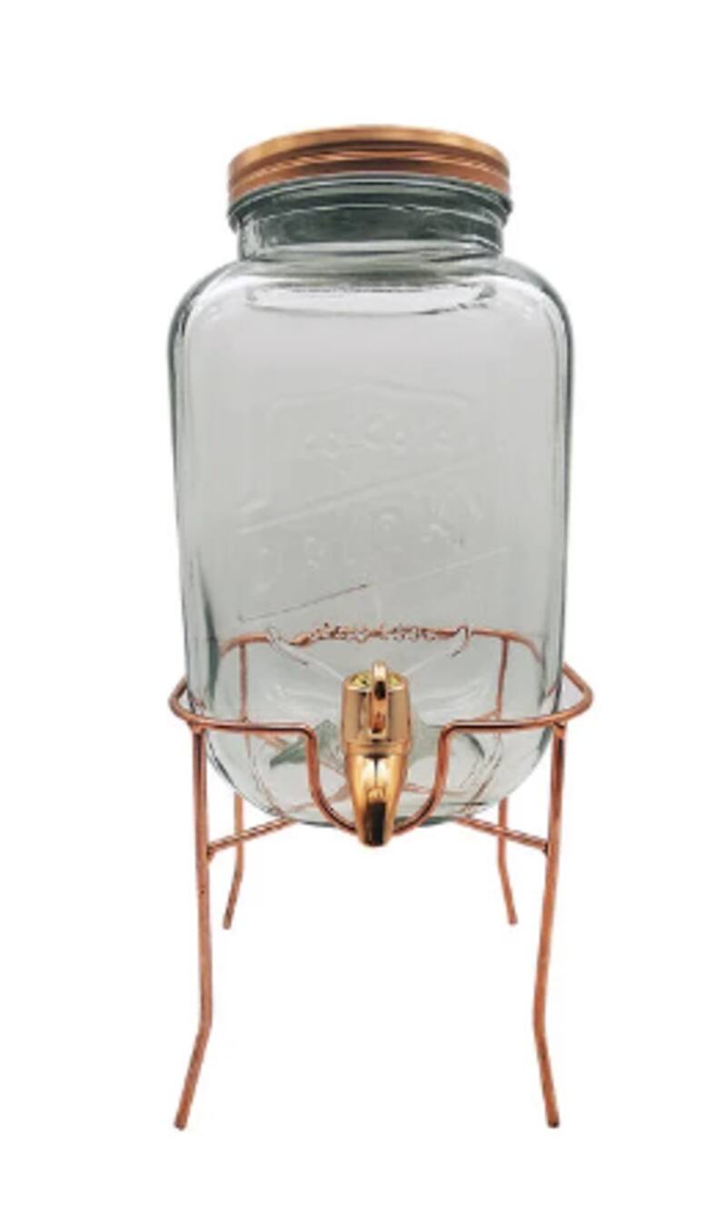 Los dispensadores de vidrio son un implemento que combina muy bien en las celebraciones con varios invitados. Puedes rellenarlas con agua y rodajas de pepino, aunque mejor aún si es con una sangría casera. Así, cada invitado se rellena a gusto. Este modelo tiene una capacidad de 4 litros.