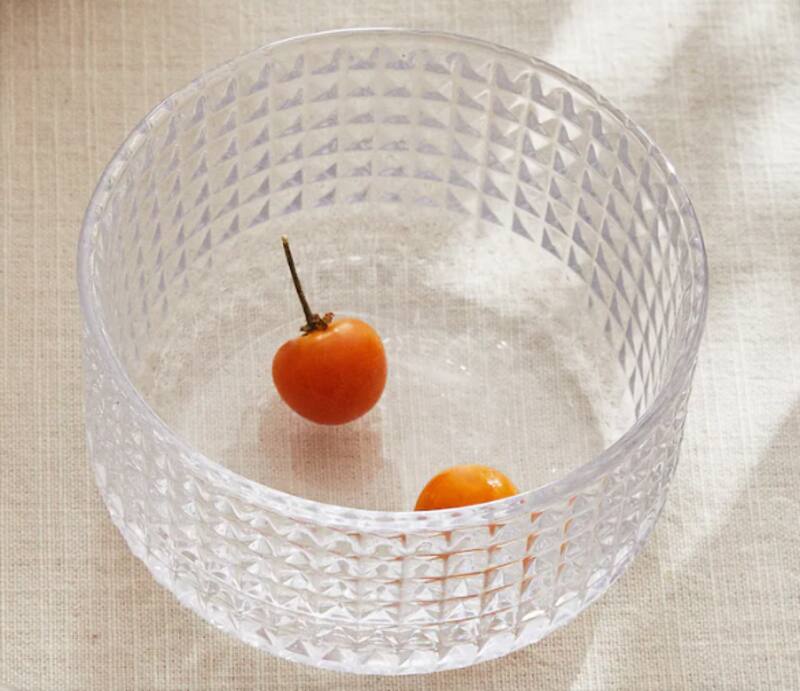 Este mini bol de vidrio, con relieve geométrico, es un diseño clásico que complementa bien tanto a una mesa moderna como a una más tradicional. En ellos puedes servir fruta, yogur, helado o lo que se te ocurra. Sus dimensiones son de 5.8 x 10.5 x 5.5 cm.