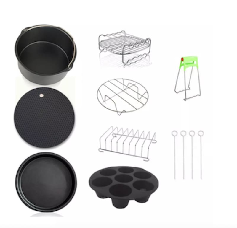 Si no sabes por qué accesorio necesitas más, una buena idea es optar por un kit completo para airfryer. Incluye sartenes, rejillas, moldes de silicona y todo lo que necesitas para sacar el máximo partido a tu freidora de aire. Sólo asegúrate de que sea compatible con tu modelo antes de hacer clic en “añadir al carrito”.