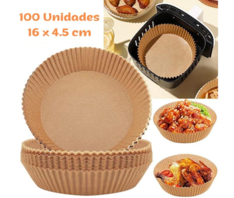 Aunque la limpieza de estas máquinas es relativamente rápida y fácil (su canasto o rejilla interna suele ser apta para el lavavajillas, y lavar a mano tampoco se hace muy complejo), una forma de minimizar la limpieza y evitar que se pegue la comida (algo que podría suceder con el paso del tiempo), siempre puedes poner un papel de horno, más conocido como papel mantequilla o si no, lo que es más simple aún, estos moldes de papel antiadherente que son perfectos para cocinar alimentos que ensucian mucho.