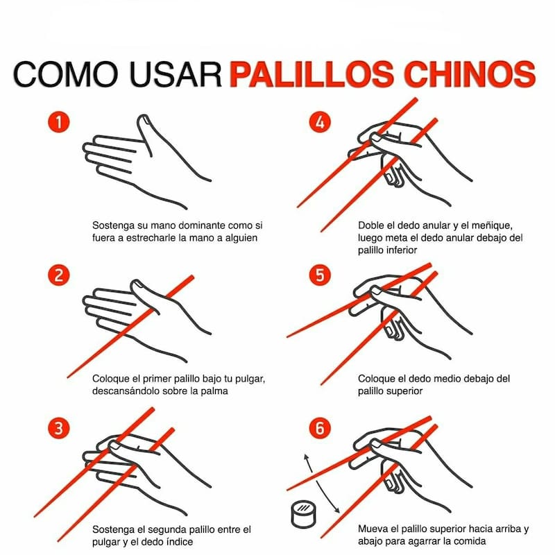 Un paso a paso de cómo usar los palillos sería el siguiente: