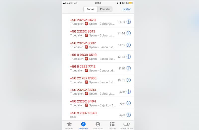 En un iPhone, por ahora, lo único que se puede hacer es silenciar las llamadas de números desconocidos. Es decir, que tu teléfono solo vibrará o sonará cuando te llame un número que está guardado en tu libreta de contactos, o bien sea uno al que hayas llamado alguna vez o que sea sugerido por Siri. De todas formas, las que sean bloqueadas aparecerán en la sección de llamadas perdidas, por lo que podrás revisarlas ahí.