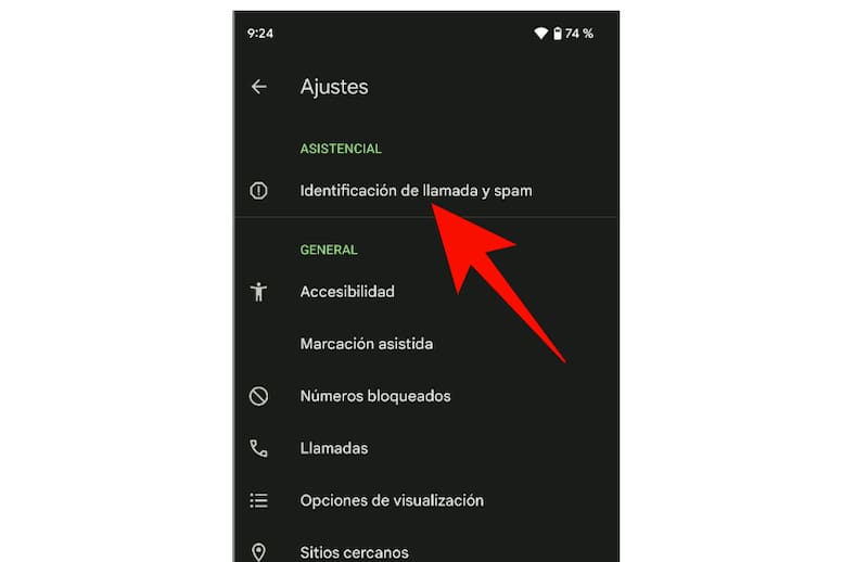 Al ingresar a los ajustes de la aplicación Teléfono, en la parte superior veremos una pestaña llamada Asistencial. En esta, tenemos que buscar la opción de Identificación de llamada y spam, algo que no será muy difícil, puesto que es la única que hay.