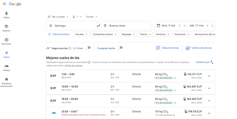 Google Flights es una de las más populares, y destaca porque además de tener información respecto de vuelos, precios y escalas, también entrega datos relevantes respecto de hoteles y atracciones en el destino seleccionado.