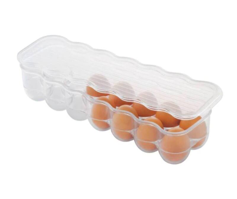 Para eso, mejor que usar la bandeja de cartón es tener un contenedor especial como el de la marca Interdesign, que es transparente y de un resistente plástico, muy fácil de limpiar. Tiene tapa —ideal para evitar accidentes y contaminación cruzada— y espacio para ubicar 14 huevos.