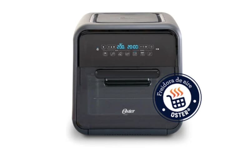 En esta lista decidimos incluir este modelo de Oster que no tiene forma de freidora de aire ni tampoco el tamaño. Es, en rigor, un horno de convección eléctrico con un ventilador más potente de lo normal, lo que le permite preparar ciertas comidas al igual que una freidora de aire.