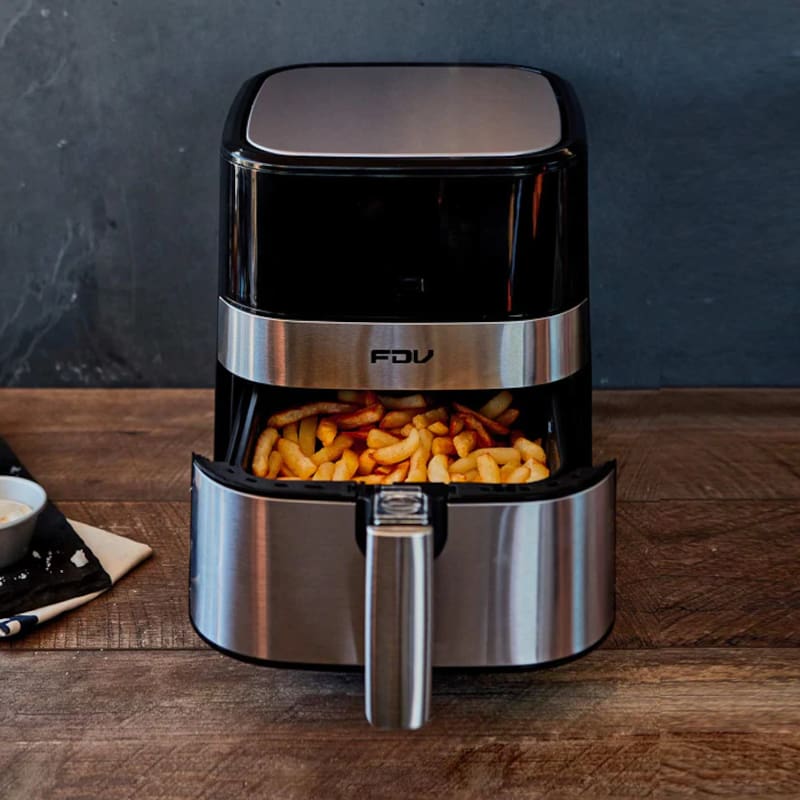 Un puntaje casi perfecto tiene la freidora de aire Airflow de FDV. Elegante en su diseño, con un sobrio panel digital y una canasta estandar pero de resistente materialidad, sus resultados al parecer son igual de prolijos que su apariencia. Mariela, una de sus usuarias, escribió que “el salmón queda maravilloso, las papas exquisitas, el pan con queso... he experimentado con todo, aunque lo mejor fueron las costillitas”.