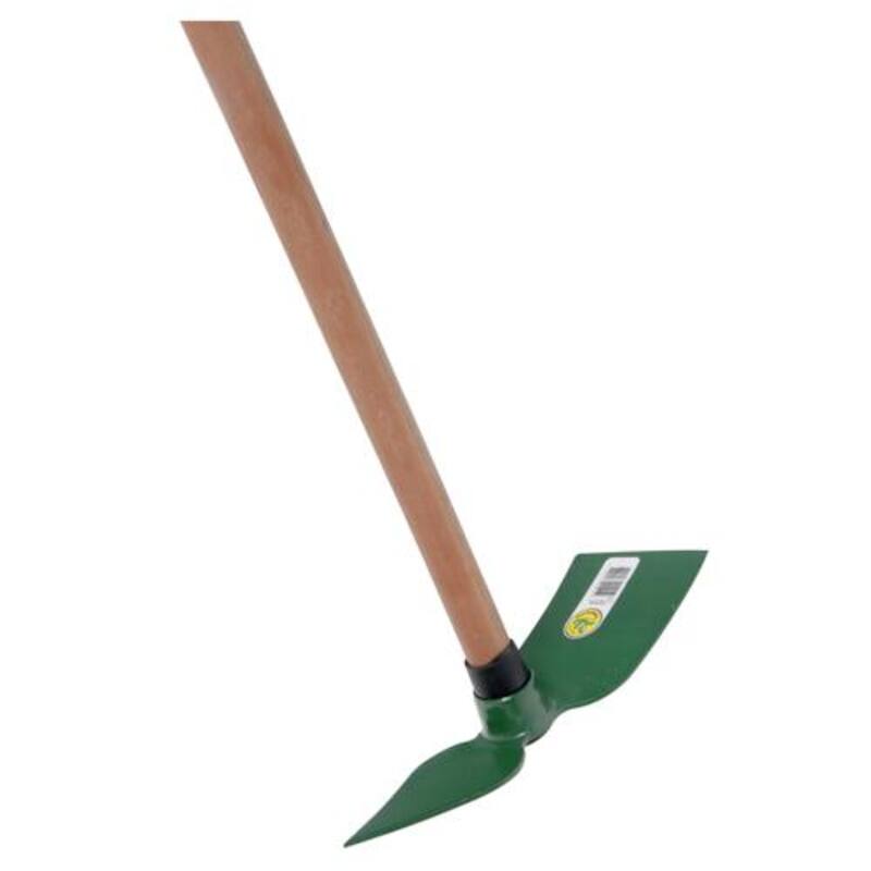 La segunda herramienta fundamental es el azadón. Con un mango largo, que permita usarlo de pie, se puede mover la tierra, hacer hoyos, desmalezar, hacer surcos y muchas cosas más. “Lo ideal es que tenga el azadón por un lado —recto y ancho, de acero para que dure mucho tiempo— y por el otro una punta”, dice Dufflocq.