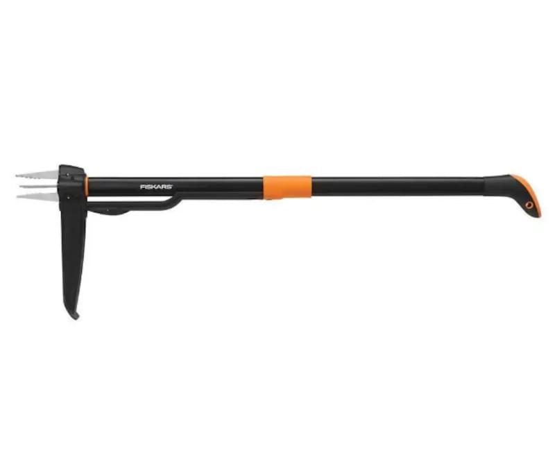 Para desmalezar, hay varias herramientas disponibles. La más cómoda, pero también más cara, es un desmalezador de pie, que permite sacar hierbas indeseadas del pasto sin necesidad de agacharse ni gatear por todo el patio. El de la marca Fiskars es manual y sencillo de usar, aunque no hace un trabajo tan fino.