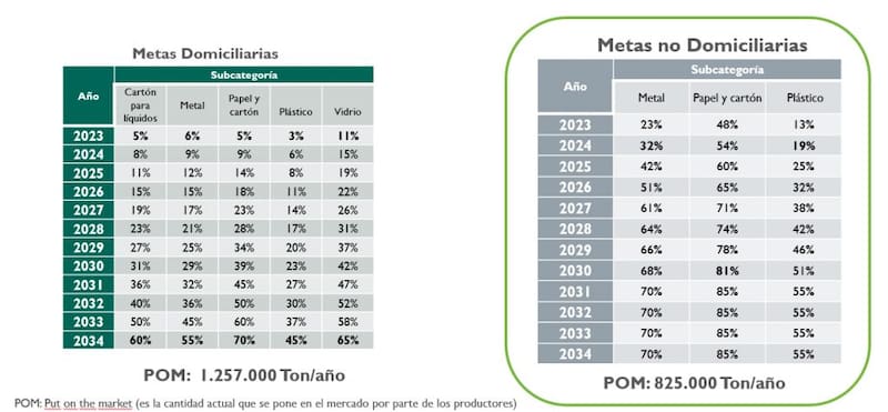 La implementación de este sistema será de forma gradual. Durante el primer año, se contempla a un 10% de las comunas del país, hasta llegar a un 80% de cobertura en 2035. Las metas de recolección y valorización de cada tipo de residuo también irá en aumento progresivo, pasando del 5% en el primer año, al 70% al doceavo, por ejemplo.