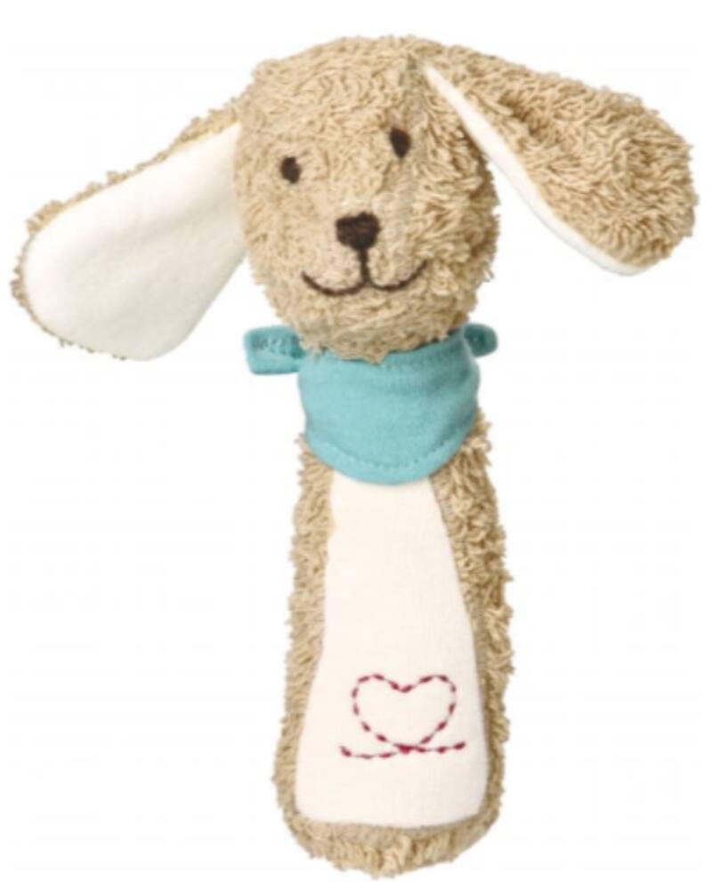 De tela suave, este juguete es perfecto para manos pequeñas que estén explorando el sonido y el tacto.