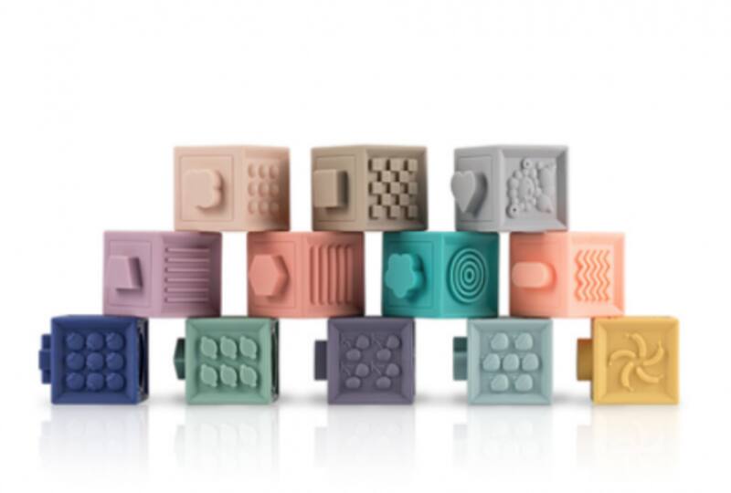 Sus primeras construcciones las podrá a hacer con estos cubos que son fabricados con goma suave de PVC, libre de BPA y sustancias tóxicas. Son cubitos que la guagua libremente puede morder, apretar y explorar sin peligro.