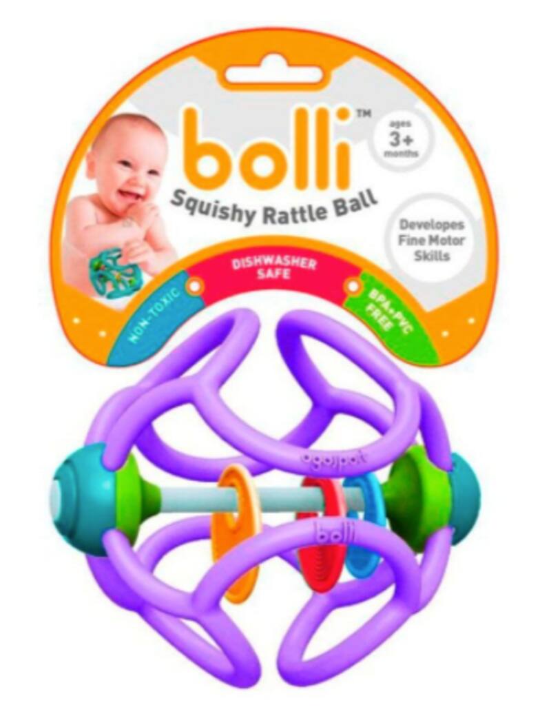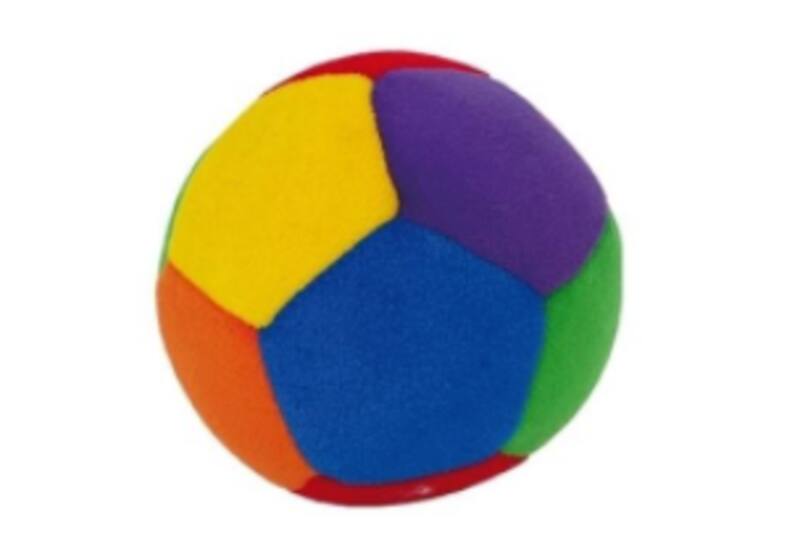 Suave y de colores. Con esta pelota, conocerá lo que es rodar y podrá tener las primeras nociones de distancia. Contiene un cascabel en su interior.