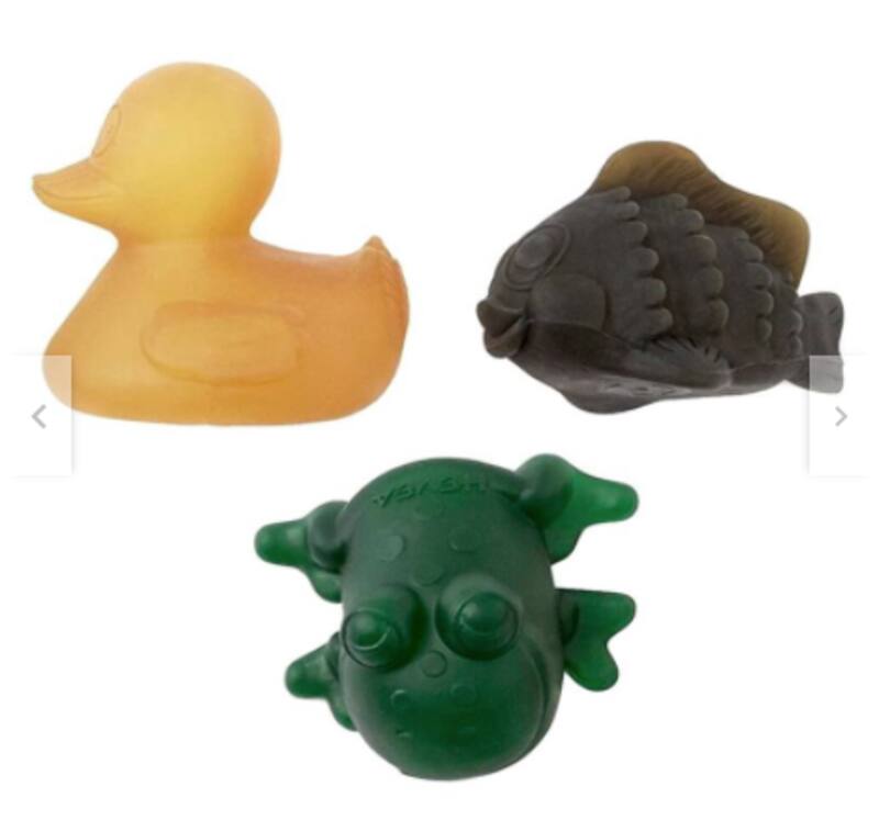 Un pato, un pez y una rana podrían ser los compañeros de baño de tu guagua. Está fabricado con caucho 100% natural, son suaves y maleables pero duraderos. Fáciles de agarrar y apretar, incluso para las manos más pequeñas, fomentando el desarrollo de habilidades de agarre y movimiento pinza del bebé.