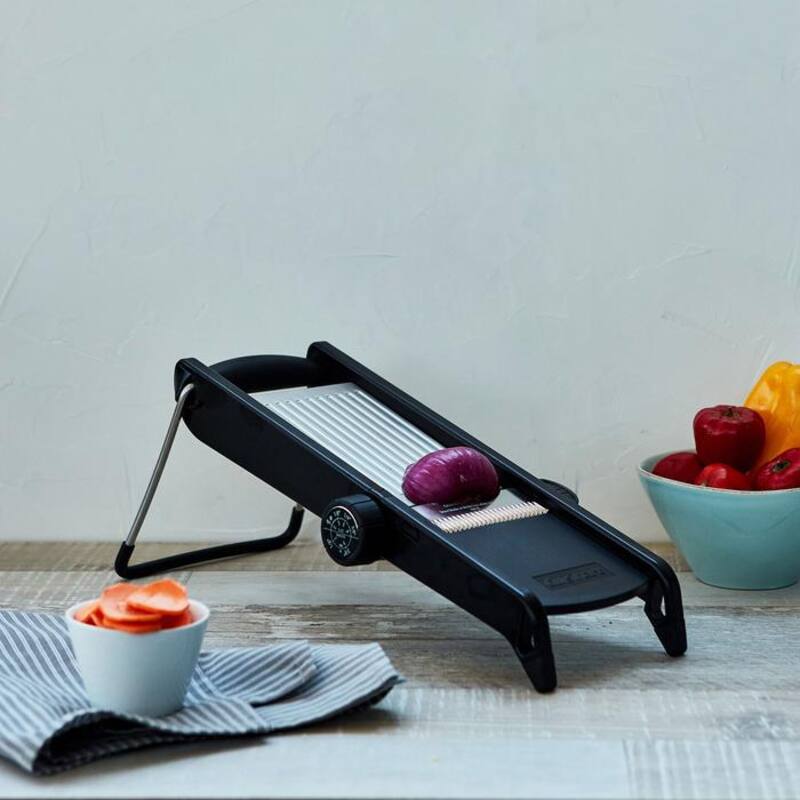 El primero es una mandolina, que sirve para laminar o rallar del grosor que se quiera cualquier fruta o verdura. “En los últimos años la he usado mucho para hacer encurtidos —como pepinillos, chucrut, rabanitos y zanahoria— y además de que cada lámina queda perfecta, soluciona la vida en términos de tiempo, me demoro menos de la mitad de lo que lo hacía ocupando un cuchillo”.