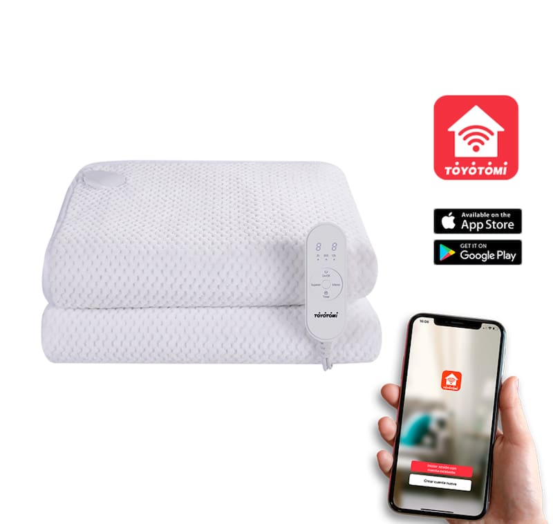 Si buscas algo más tecnológico, este calientacamas Toyotomi, también de una plaza, es capaz de conectarse a la red wifi y manejarlo mediante una aplicación móvil. O sea, que puedes prender, apagar o regular la temperatura de tu cama desde el teléfono. También cuenta con un sensor de sobrecalentamiento: al detectar subidas bruscas de temperatura, corta la energía del calefactor evitando posibles accidentes. Otro detalle especial es que puedes regular la temperatura para todo el aparato o por sectores: si quieres la zona de los pies más calientes, puedes hacerlo sin problemas.