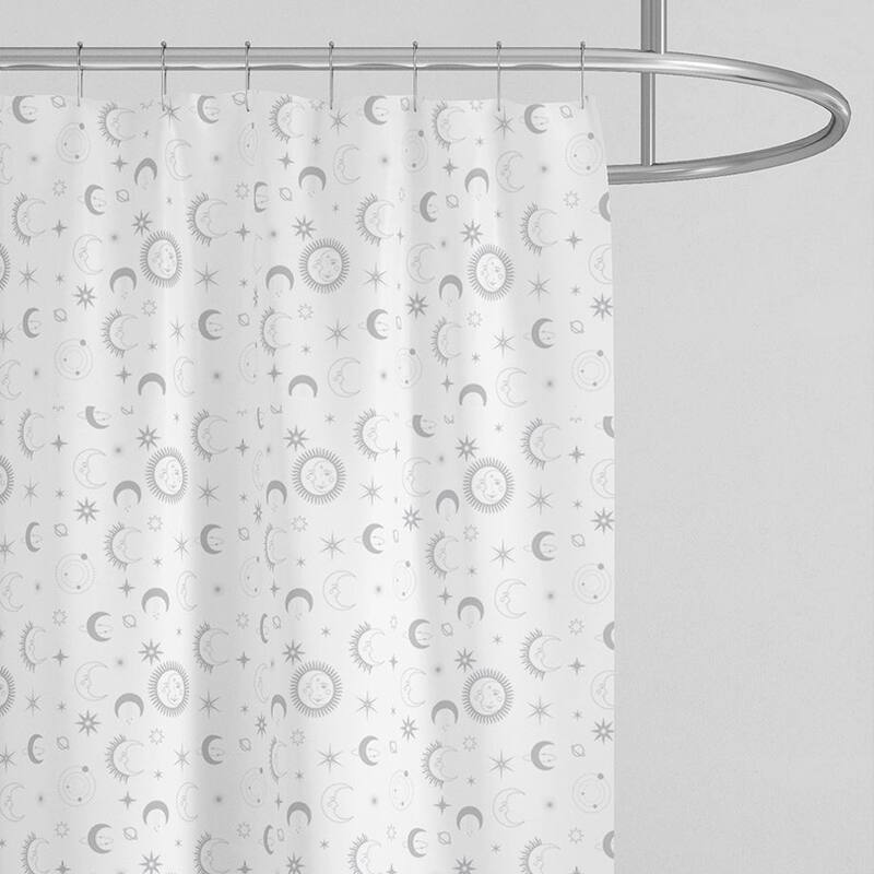 Regularmente, las cortinas del mercado suelen ser de 180 cm —72 x 72 pulgadas—, sin embargo también las venden más cortas o puedes hacerles una vasta. Pero no es solo una cosa de gustos: el rol principal del largo y ancho es garantizar que la cortina retenga el agua de la ducha y que está no se escape hacia el resto del baño.