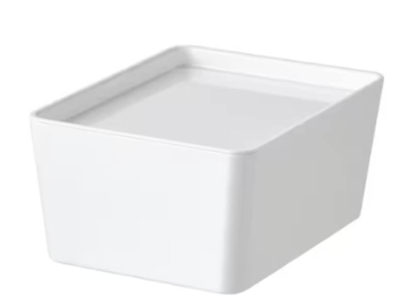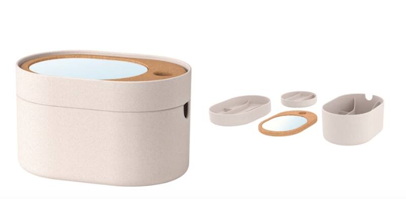 De aspecto minimalista, esta caja con tapa blanca de plástico PET —al menos un 50% reciclado— tiene un diseño atemporal de formas suaves. Es ideal para guardar y apilar diferentes cosas, como cables, lápices y, por supuesto, maquillaje. Puede usarse en baños y otras zonas húmedas, ya que su material la resiste perfectamente. Para limpiarla, basta con pasarle un paño húmedo, un limpiador o un detergente suave. Hay de diferentes dimensiones, pero para maquillaje aconsejamos la de 13 cm de ancho por 18 cm de fondo y 8 cm de alto.