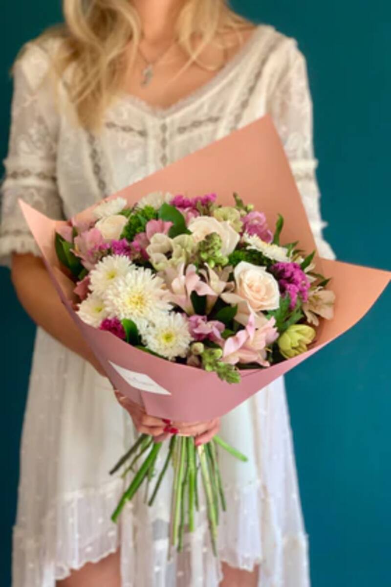La tienda Las Varas Flores también tiene esa línea menos convencional, tiene tres ramos distintos para el Día de la Madre. El primero se llama Mamá Petit, tiene 13 varas de tonos pasteles y rosados, incluye una tarjeta y cuesta $22 mil más despacho. El segundo es Mamá Especial M, y cuenta con 30 varas de flores de los mismos tonos; cuesta $30 mil. Y el tercero es Mamá Especial L, con 37 varas y cuesta $45 mil.