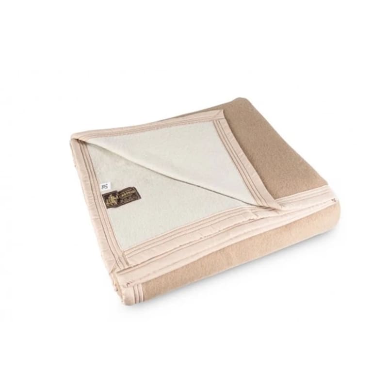 Una segunda alternativa, un poco más económica, es esta que supone menos pureza. “Es una muy buena frazada, que mantiene las propiedades de la lana. Aunque es algo inferior a la frazada 100% lana virgen, es menos delicada y durará y abrigará por muchos años”, describe Casaccia. El modelo de más abajo es de dos plazas (200 x 210 cm).