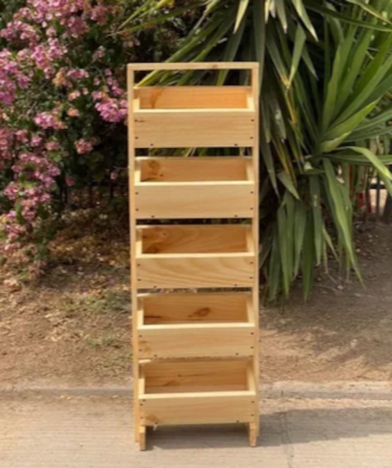 Este es un modelo de cinco cajones, los que pueden ser barnizados con color a elección. En su interior están reforzados con sellante para una mayor durabilidad de la madera. Las medidas de este modelo son 44 cm de ancho, 132 cm de alto y 22 cm de profundidad.