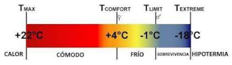 - Y el límite extremo es aquella temperatura en la cual una mujer estándar puede dormir seis horas sin riesgo de sufrir hipotermia.