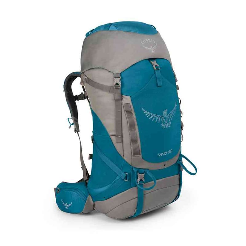 El modelo femenino de esta misma mochila es la Osprey Viva, de 50 litros, cuyas hombreras están diseñadas especialmente para mujeres. También cuenta con cinturón lumbar ajustable y con bolsillos, un compartimento separado para el saco en la parte inferior, además uno para bolsas de hidratación, mallas laterales para botellas o implementos de acceso rápido y una espaldera ajustable para distintas tallas de torso. Por ahora, lamentablemente, se encuentra fuera de stock.