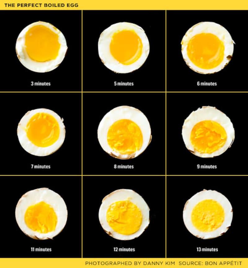 Se meten en una olla con agua hirviendo y, dependiendo de la textura deseada, se cocinan por una determinada cantidad de tiempo. Así, para un huevo bien líquido (o a la copa) se deja tres minutos. Para una clara firme, pero la yema aún cremosa, cinco minutos. Y para uno bien durito, ocho minutos y luego meterlos en agua con hielo para cortarles la cocción.