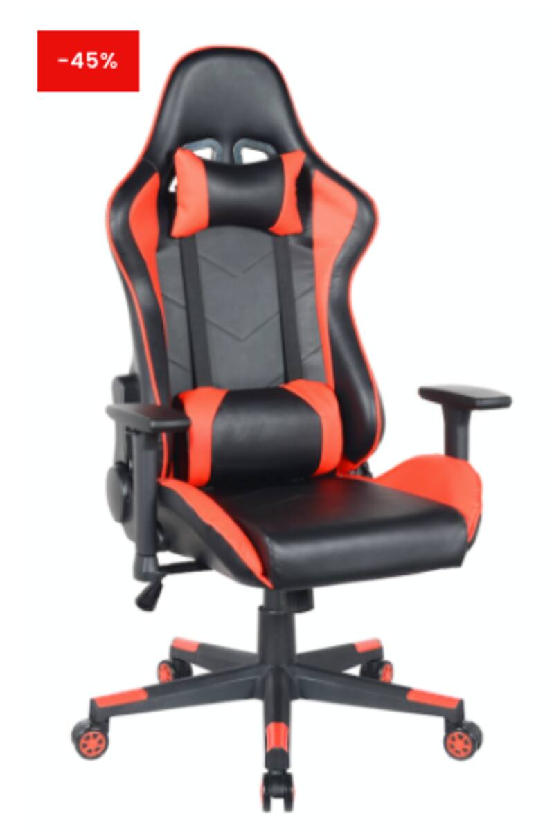 Incluye cojines para apoyo lumbar y apoyo cervical. Tiene un respaldo con mecanismo reclinable hasta 180º y apoya brazos regulable en altura.
