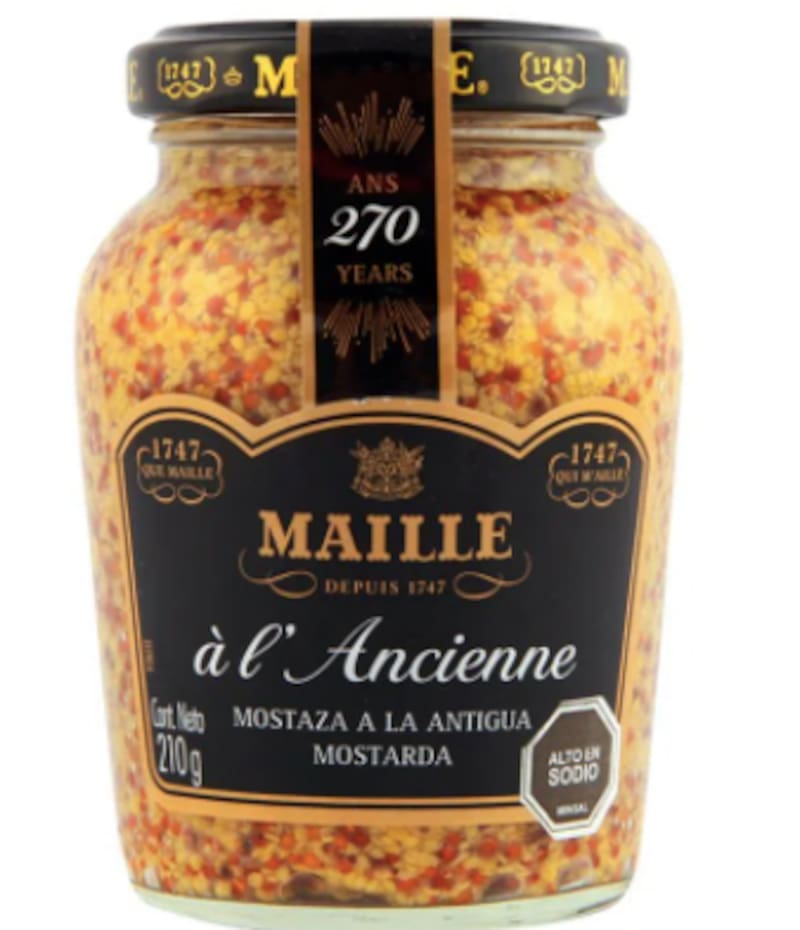 Al igual que la Dijon, la versión con semillas o también conocida como “a la antigua” también se ha hecho bastante popular en Chile. Tiene el mismo sabor y sirve prácticamente para aderezar los mismos alimentos que la Dijon, aunque claro, con una textura diferente dada por las semillas de mostaza que contiene. Esto último hace que algunas personas la prefieran y a otras justamente les pase lo contrario. En lo personal prefiero la Dijon, pero la con semillas es mucho mejor para preparar un fantástico aliño para ensaladas que va a continuación.
