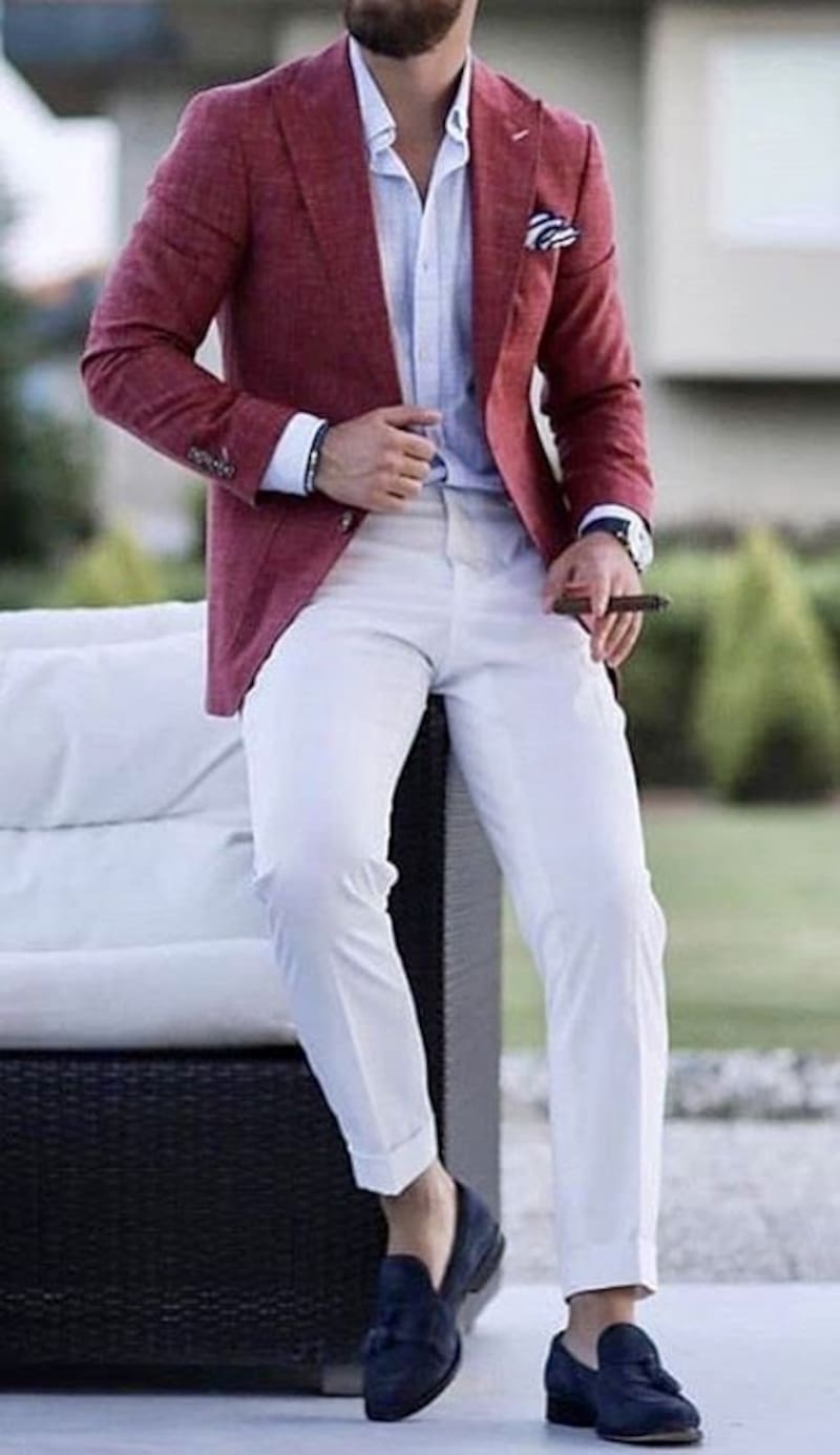 Para un matrimonio de día, Pavez sugiere mezclar “tipos de azul, burdeos o camisa blanca, ya que entre estos colores siempre hay una elegancia”, analiza. Para los más osados “se puede permitir algo más polémico, como por ejemplo un pantalón blanco bien cortado recto, con zapato café, un blazer burdeos y camisa celeste”. Una decisión osada, pero de que se ve bien, se ve bien.
